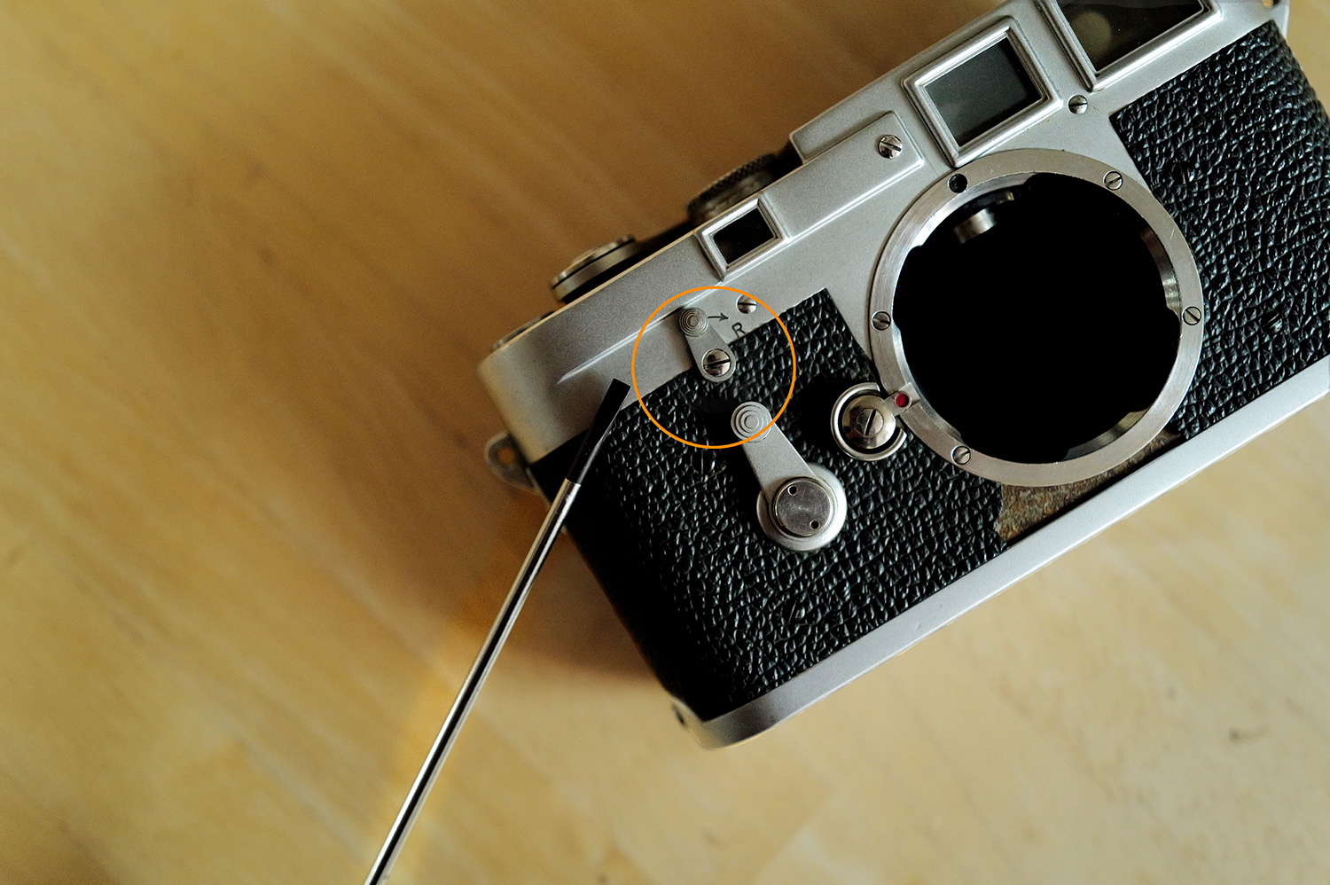 필름 리와인딩 레버 제거용 일자드라이버 입니다.