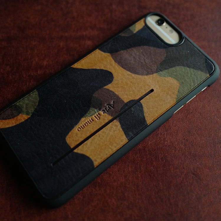 질 좋은 베지터블 가죽에 밀리터리 문양을 찍은 카모플라주는