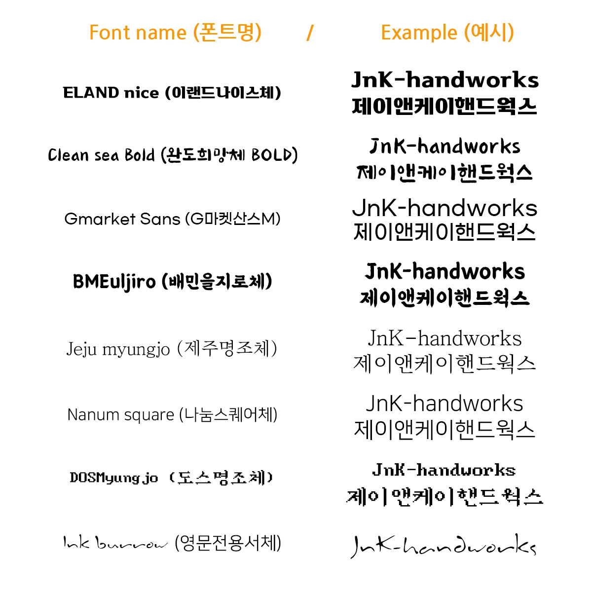 예시) 문구 : JnK-handworks / 폰트 : inkburrow